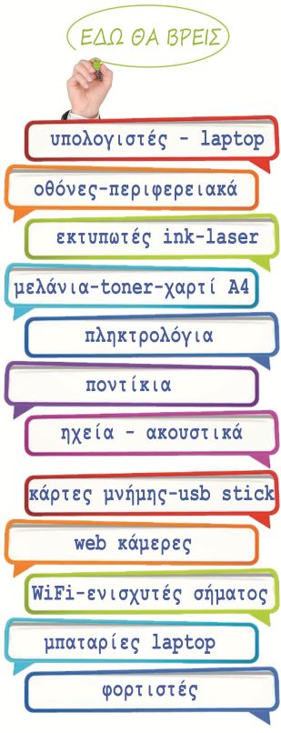Εξοπλίστε την επιχείρηση ή το γραφείο σας με περιφερειακές συσκευές υψηλής τεχνολογίας και ρωτήστε μας για να βρούμε μαζί τα μηχανήματα που ανταπεξέρχονται καλύτερα στις ανάγκες σας.